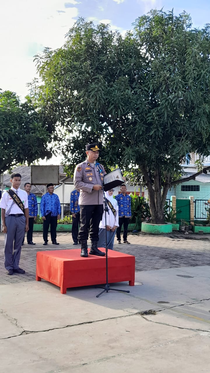 Bhabinkamtibmas Polsek Ciwandan Dampingi Kabag SDM Polres Cilegon Polda Banten KOMPOL Entang Cahyadi Pimpin Upacara Dan Menyambangi MAN 1 Kota Cilegon Dikelurahan Lebak Denok Kecamatan Citangkil, Menyampaikan Pesan-pesan Kamtibmas Dan Memberikan Imbauan, Selasa (18/11/2025).