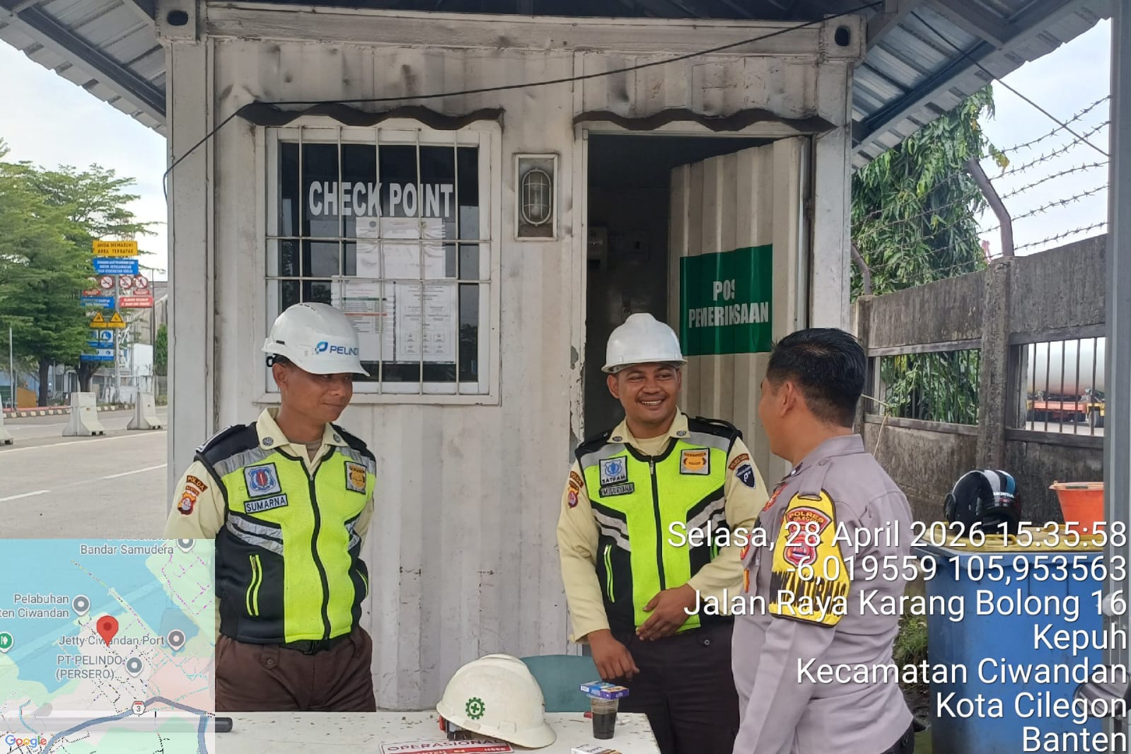 Kapolres Cilegon Polda Banten AKBP Martua Raja Taripar Laut Silitonga Melalui Kapolsek Kskp Banten Polres Cilegon Polda Banten IPTU Bobi Nainggolan Mengatakan Personil Polsek Kskp Banten Rutin menyambangi Karyawan dan memberikan himbauan agar para pekerja mematuhi aturan K3 saat bekerja di lingkungan Kawasan Pelabuhan.