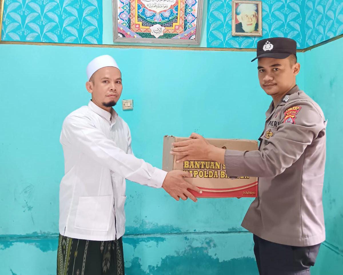 Bhabinkamtibmas Polsek Rangkasbitung Polres Lebak BRIPKA Riki Andriana, salurkan bantuan paket sembako dari Kapolda Banten untuk Ponpes.
