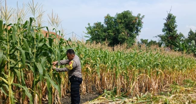 Bhabinkamtibmas terjun Langsung ke Kebun Petani Jagung Membantu Panen Jagung