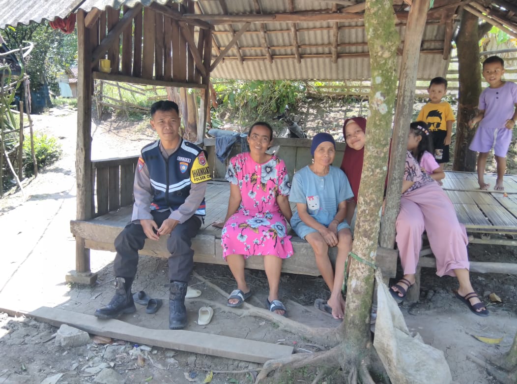 Bripka Umri menghampiri Ibu-ibu kumpul bersama dengan warga Sekaligus menyampaikan pesan Kamtibmas, Minggu (15/03/2025)