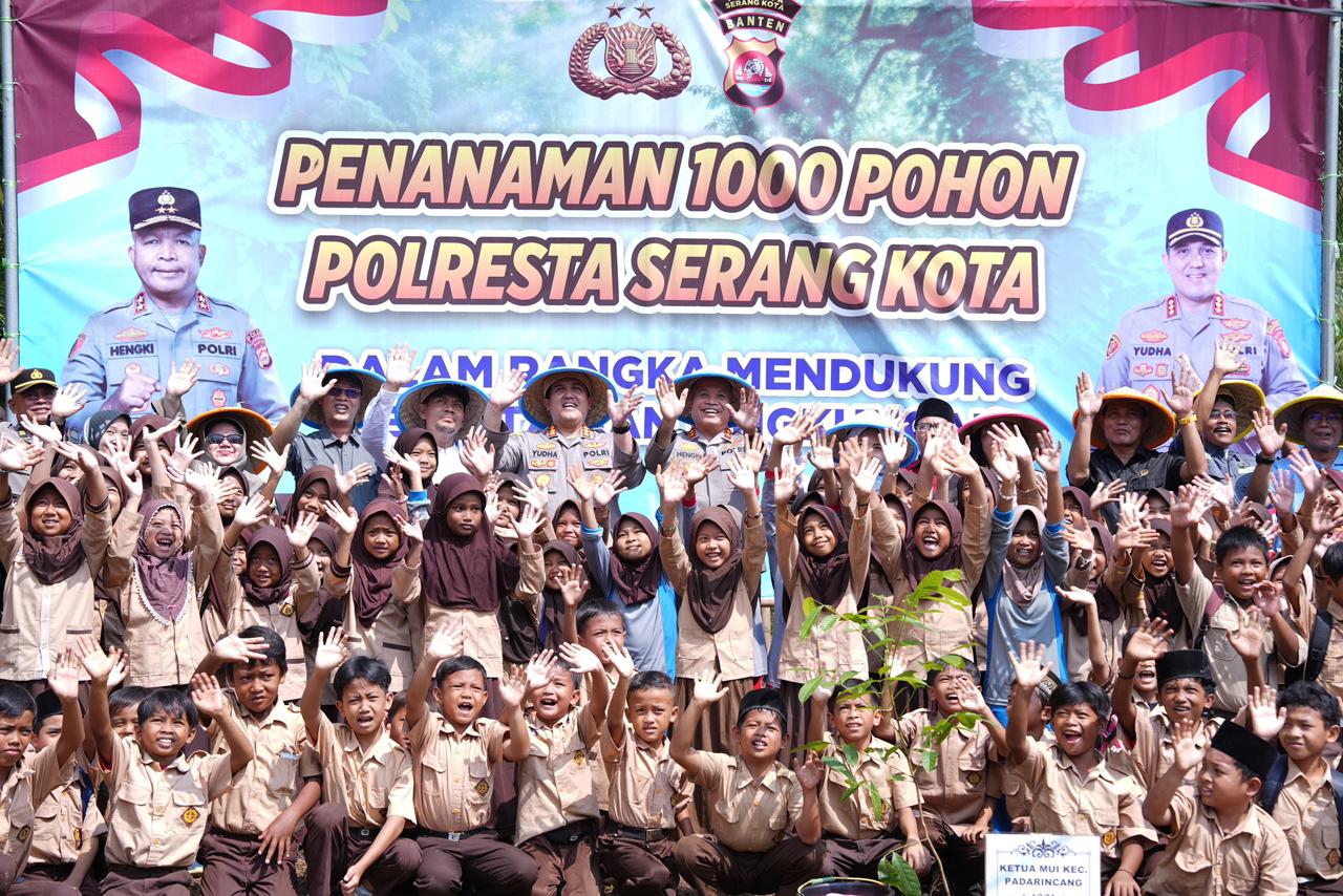 Dalam rangka mendukung gerakan Indonesia ASRI, Polda Banten melaksanakan kegiatan groundbreaking pembangunan Jembatan Merah Putih Presisi sekaligus penanaman 1.000 pohon di Desa Cisaat, Kecamatan Padarincang, Kabupaten Serang pada Jum’at (24/04).