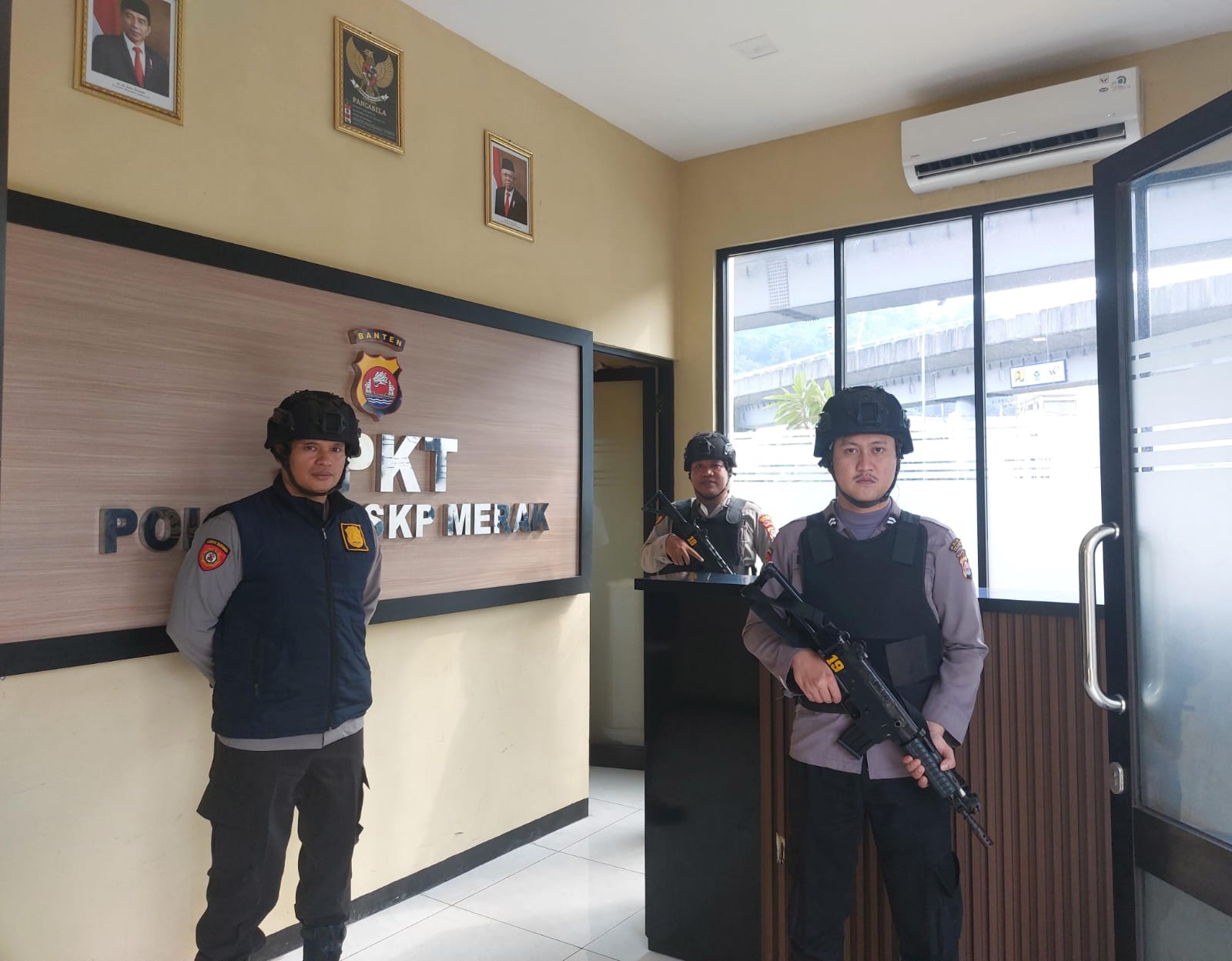 Personel piket jaga Polsek Kskp Merak Polres Cilgon Polda Banten melaksanakan Pengamanan Mako Polsek, Rabu (24/04/2024).