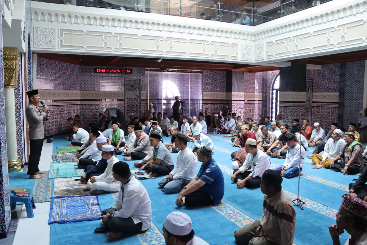 Usai pelaksanaan Sholat Jumat berjamaah yang dipimpin Ustaz H. Ni’matullah, Lc., M.A., kegiatan dilanjutkan dengan sesi “Jumat Curhat”, di mana Kapolres menyampaikan pesan kamtibmas sekaligus menyerap aspirasi masyarakat secara langsung.