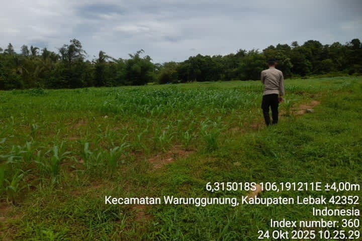 Kanit Bimas Polsek Warunggunung Polres Lebak,AIPTU AGOES Herlan dan Anggota ,dalam rangka mendukung program ketahanan pangan nasional,sekaligus cek bibit pohon jagung hibrida.