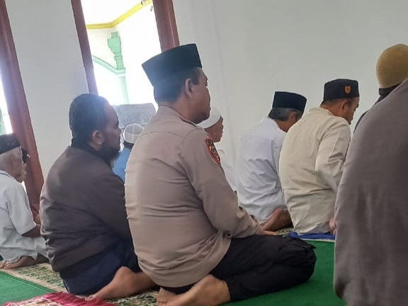 Bhabinkamtibmas polsek Pulomerak Polres Cilegon Polda Banten bersama dengan Kapolsek Pulomerak kunjungi Tomas pada hari Kamis (16/4/26) dan Personil Polsek Pulomerak makmurkan mesjid laksanakan sholat isya.