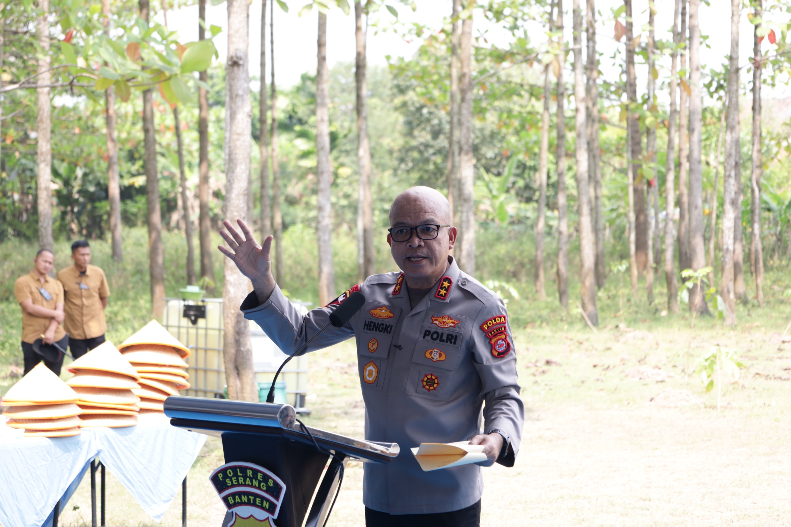 Dalam keterangannya, Kapolda Banten menegaskan bahwa kegiatan penanaman pohon ini merupakan bentuk komitmen nyata dalam menjaga kelestarian lingkungan sekaligus implementasi dari Gerakan Indonesia ASRI. “Penanaman pohon adalah investasi jangka panjang untuk menjaga keseimbangan alam, memperbaiki kualitas lingkungan hidup, serta memberikan manfaat bagi generasi yang akan datang. Hari ini kita menanam kurang lebih 3.000 pohon di lahan sekitar 2,7 hektar, termasuk 500 bibit mahoni dan tanaman jabon,” ujar Kapolda Banten.