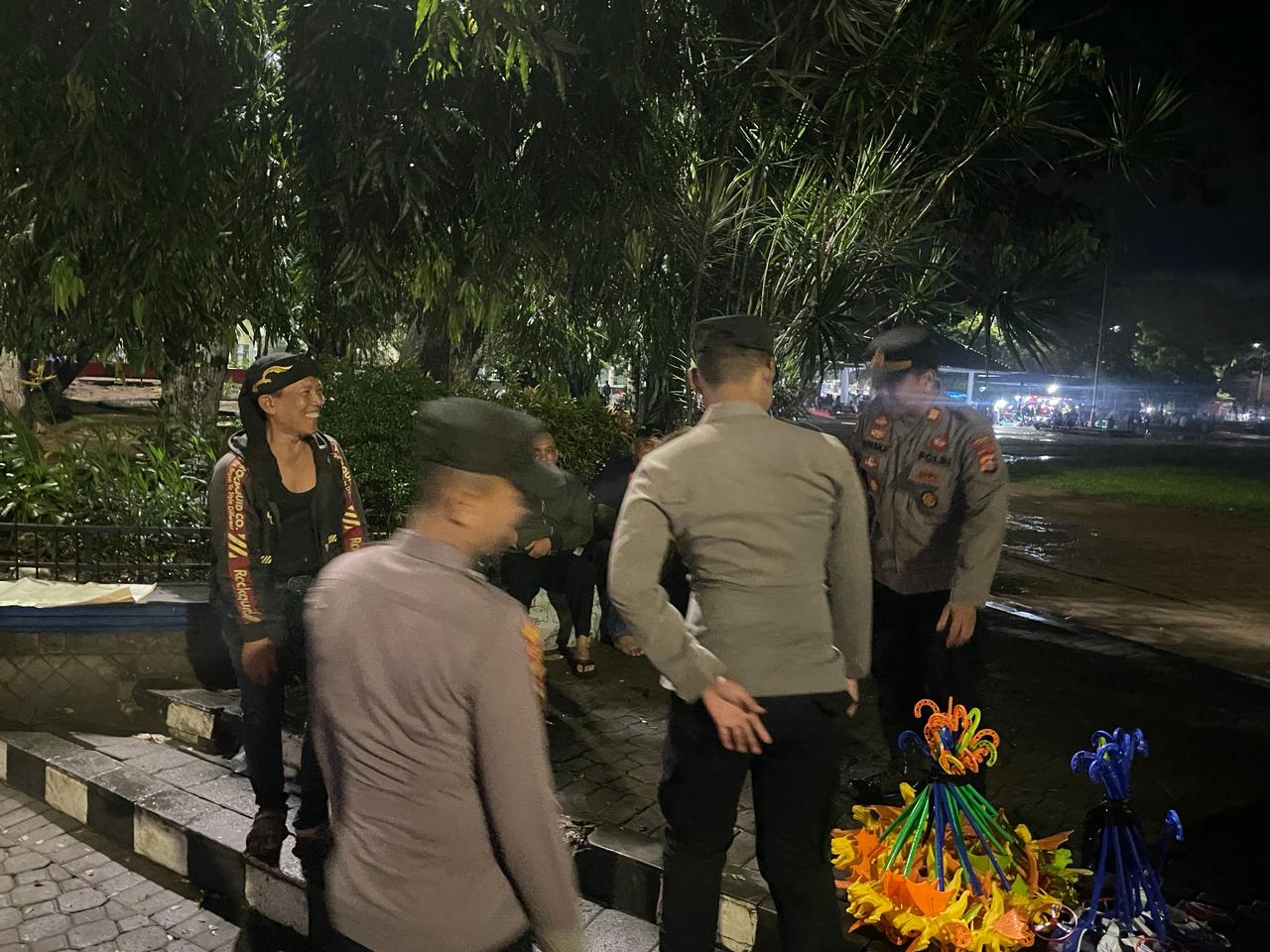 Kapolsek Rangkasbitung Polres Lebak AKP Pipih Iwan Hermansyah.SH, BRIPKA Turas Catur dan BRIGADIR Imam Solichin, melaksanakan program Kapolri Quick Wins Presisi Polri sekaligus sambang ke pedagang mainan anak-anak di alun-alun Rangkasbitung, Kelurahan Rangkasbitung Barat, Kecamatan Rangkasbitung, Kabupaten Lebak.Sabtu malam 27 April 2024,pukul.22.00 wib.