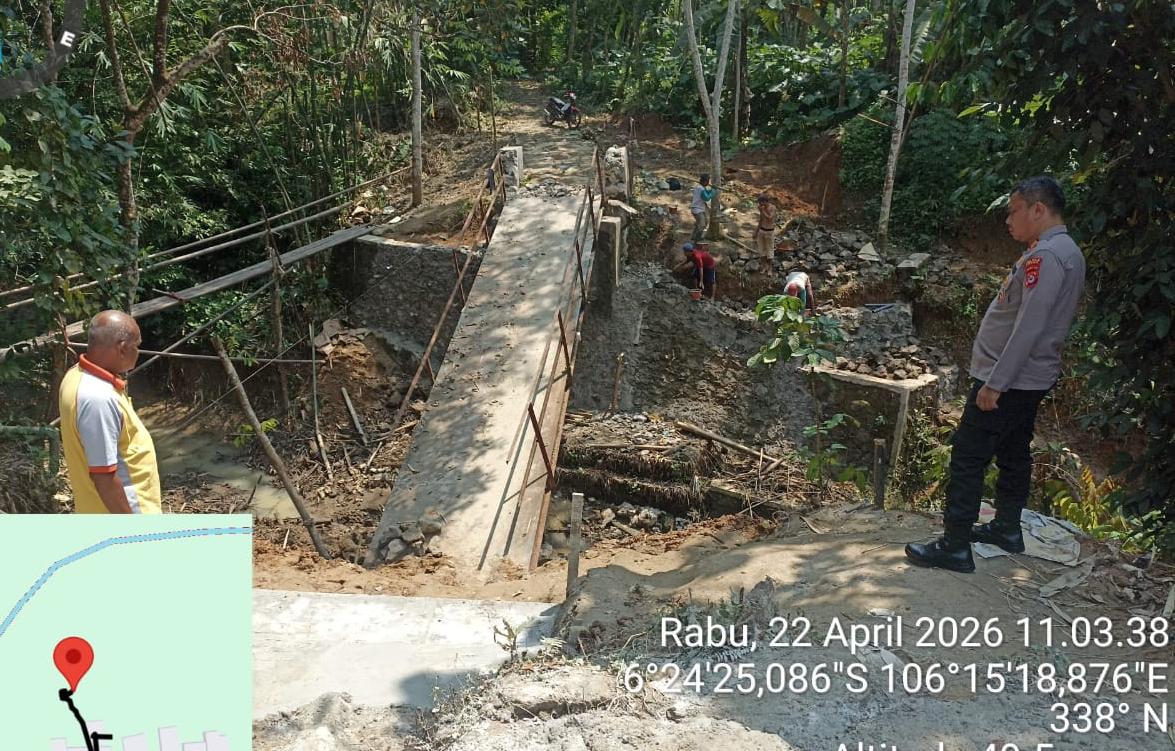 Kapolsek Rangkasbitung Polres Lebak AKP.Henri Sinaga,. SH,melakukan pengecekan progres pembangunan Jembatan Merah Putih Presisi dalam rangka Program Kapolda Banten di Desa Sangiang Tanjung, Kecamatan Kalanganyar, Kabupaten Lebak.Rabu (22/04/2026).