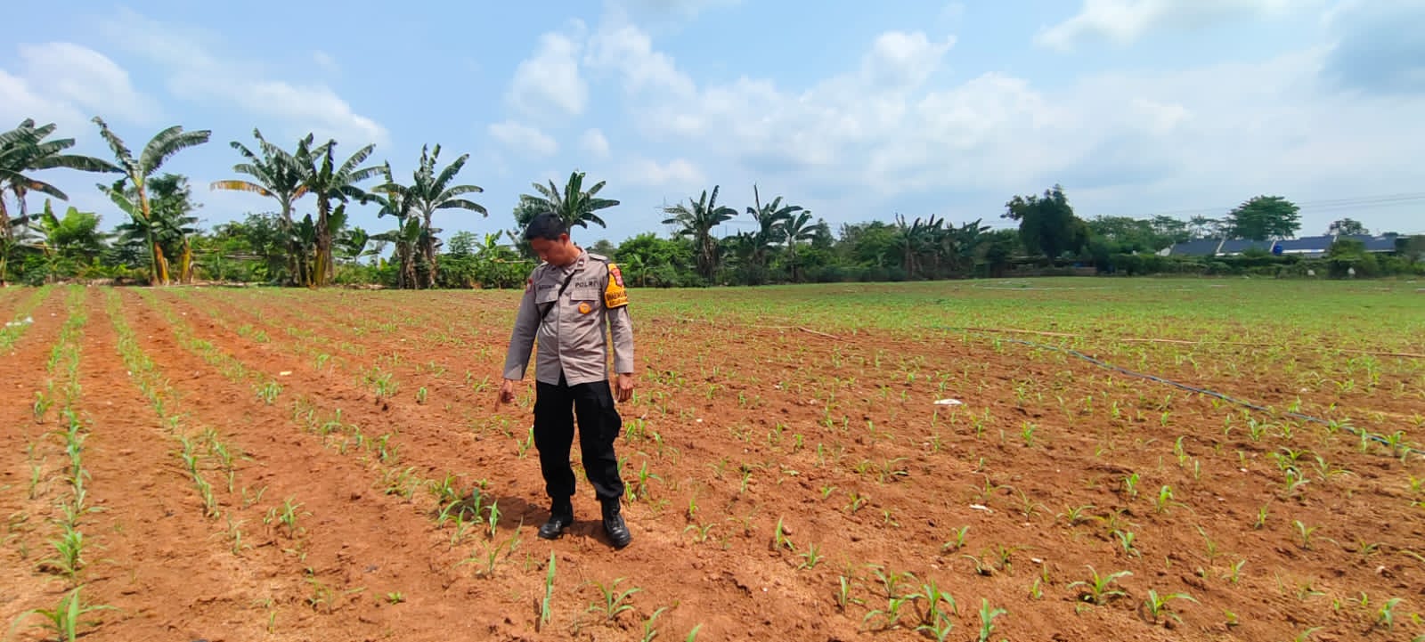 Personel Polsek Serang melaksanakan kegiatan peninjauan perkembangan bibit jagung di lahan seluas 1 hektar yang berlokasi di Lingkungan Perumnas Ciracas, Kelurahan Serang, Kecamatan Serang, Kota Serang, pada Sabtu (18/10/2025). Kegiatan tersebut merupakan bagian dari dukungan Polsek Serang terhadap program ketahanan pangan yang dicanangkan oleh pemerintah dan Polri.