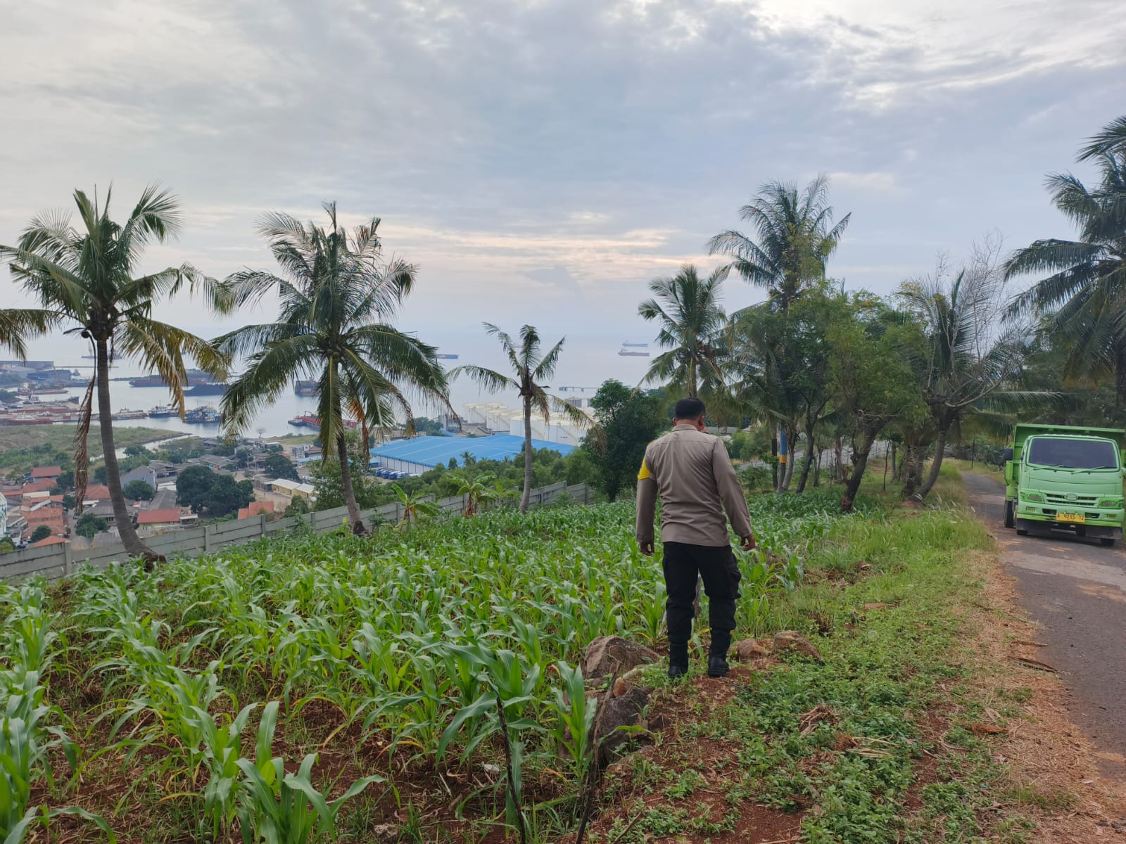 Oleh sebab itu Kapolsek Pulomerak bersama bhabinkamtibmas polsek Pulomerak bersama masyarakat Kel. Lebakgede kec. Pulomerak meninjau lahan jagung, ujarnya