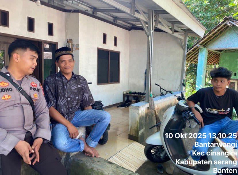 Guna Menekan Gangguan Kamtibmas (GKTM) ,Bhabinkamtibmas Polsek Cinangka Polres Cilegon Polda Banten lakukan kegiatan Sambang di daerah hukum Polsek Cinangka, Sabtu (11/10/2025).
