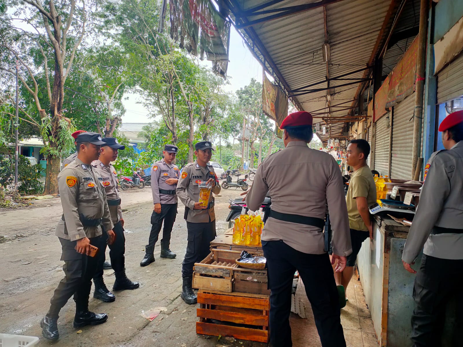 Pleton Siaga Polresta Tangerang melaksanakan pengecekan harga bahan pokok penting (bapokting) di Pasar Ciung, Kecamatan Tigaraksa, Kabupaten Tangerang, Jumat (20/2/2026).