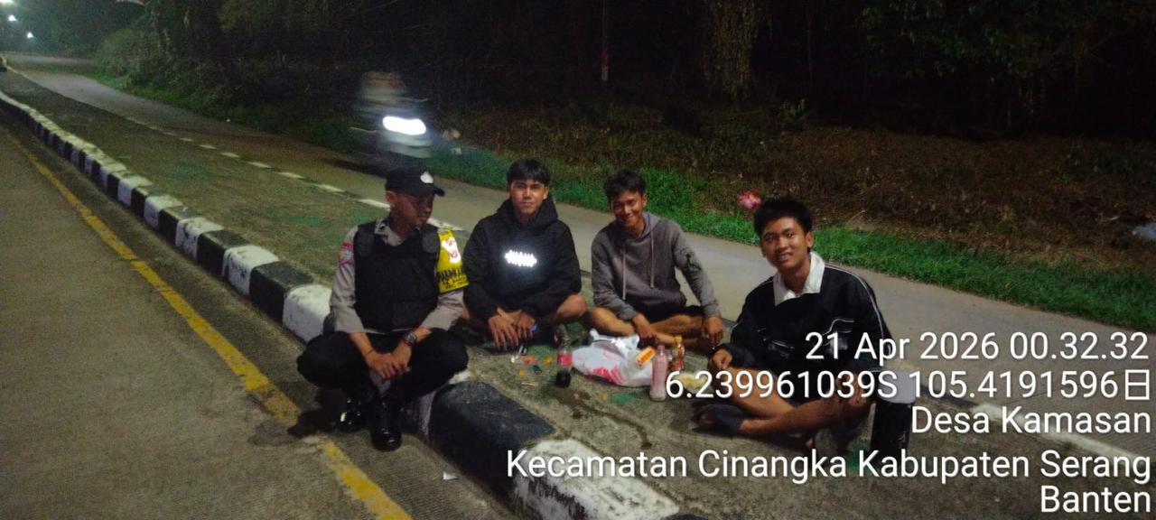 Dalam Rangka Pencegahan Street Crime dan Memelihara situasi keamanan dan ketertiban serta memberikan rasa aman dan nyaman di masyarakat,Salah satu upaya untuk mewujudkan hal tersebut sebagaimana yang dilakukan oleh Personil Polsek Cinangka Polres Cilegon Polda Banten melaksanakan giat patroli blue light malam hari hingga menjelang pagi, Rabu (22/04/2026).