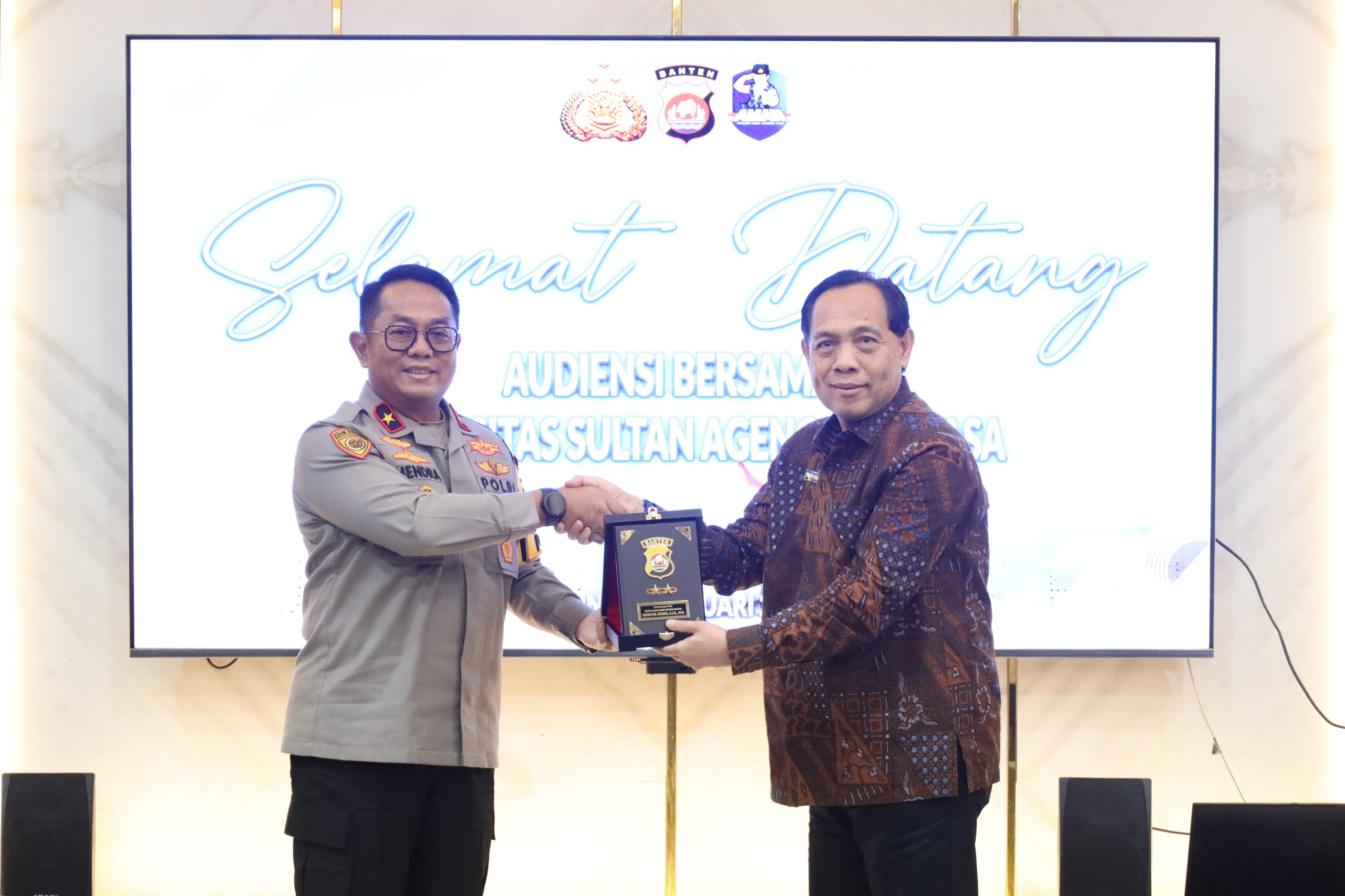 Polda Banten menerima audiensi dari Universitas Sultan Ageng Tirtayasa (Untirta) di Ruang Maung Lounge Polda Banten. Kegiatan tersebut berlangsung dalam suasana penuh keakraban dan kekeluargaan sebagai bentuk penguatan sinergi antara kepolisian dan dunia akademisi pada Senin (09/02).