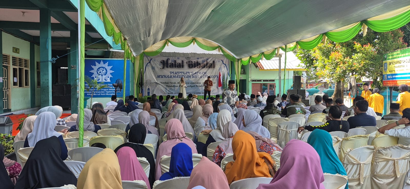 Suasana penuh kebersamaan dan kekhidmatan mewarnai kegiatan Halal Bi Halal dan Tabligh Akbar Pimpinan Daerah Muhammadiyah Kota Cilegon yang digelar di Perguruan Muhammadiyah, Jl. Stasiun No. 22, Kelurahan Jombang Wetan, Kecamatan Jombang, Minggu (12/4/2026).