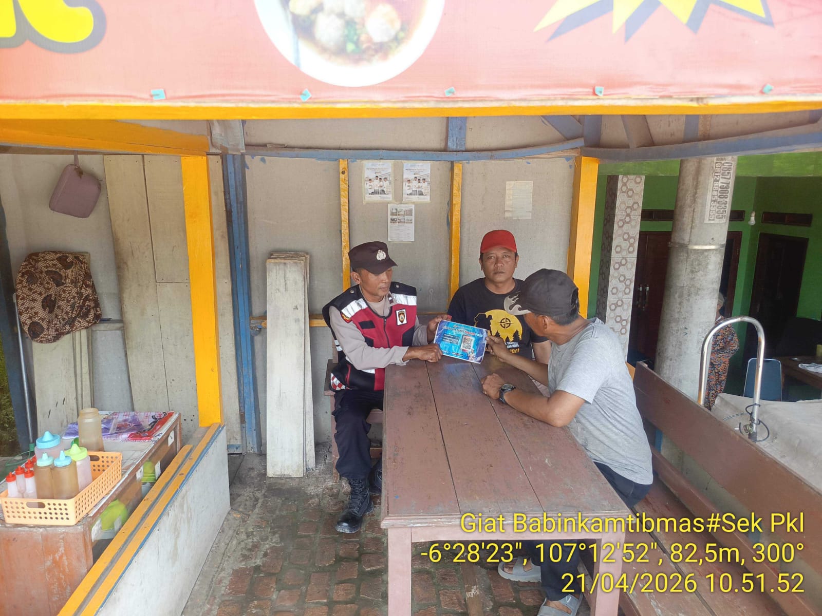 Anggota Polsek Pangkalan, Bripka Ahmad Supriatna, melaksanakan sosialisasi Pengaduan Cepat Propam Polri kepada warga Desa Mulangsari, Kecamatan Pangkalan, Karawang, Selasa (21/4/2026).