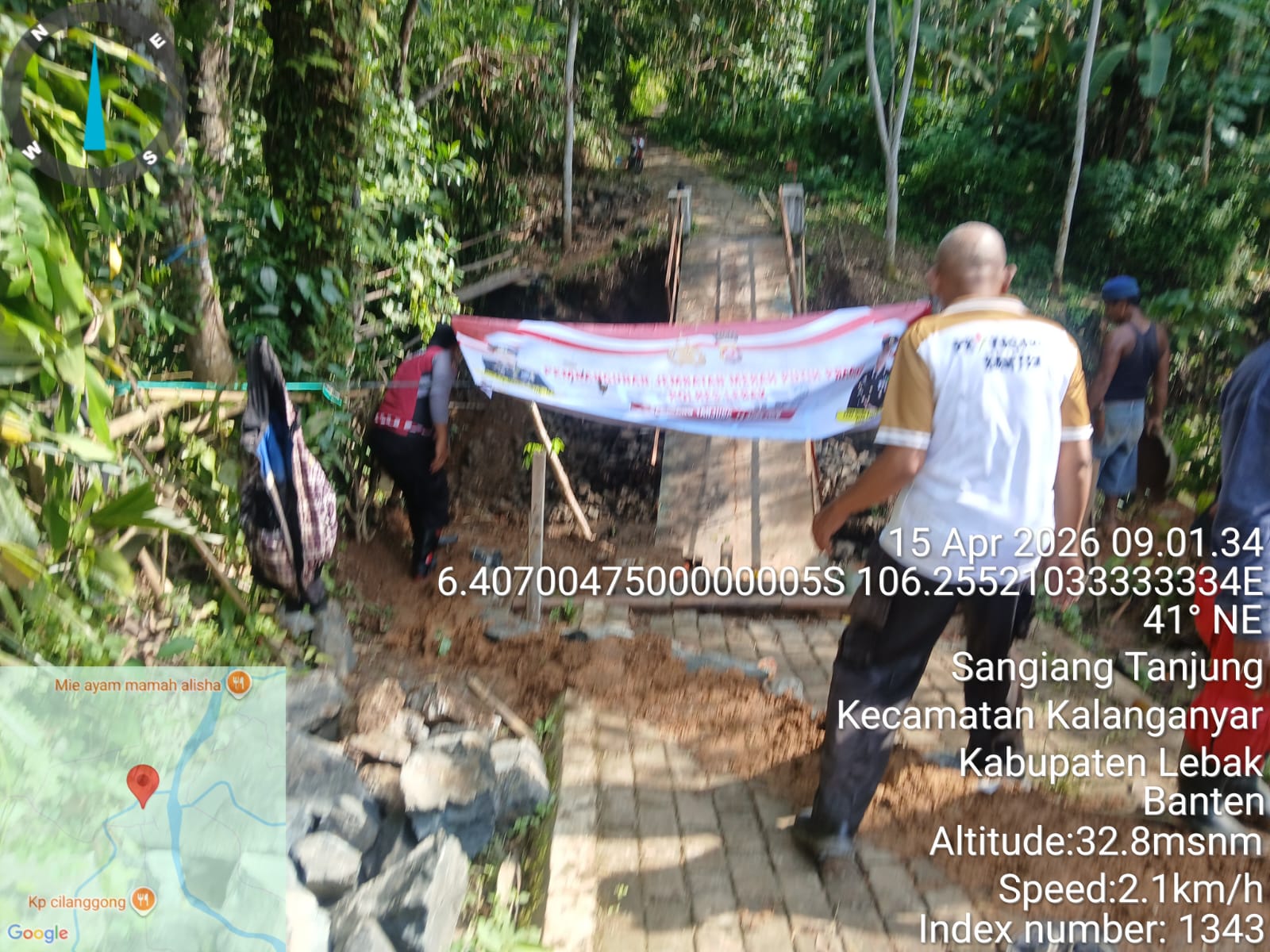 Dengan semangat gotong royong, personel Polsek Rangkasbitung Polres Lebak bersama pemerintah desa dan warga setempat bahu-membahu mengerjakan pembangunan jembatan Merah Putih Presisi menggunakan material batu, pasir, semen hingga pengecoran beton, demi memastikan aktivitas masyarakat tidak terputus, khususnya warga masyarakat di lima Kampung tersebut dan anak-anak sekolah, dapat berjalan dengan lancer dan aman dilalui.