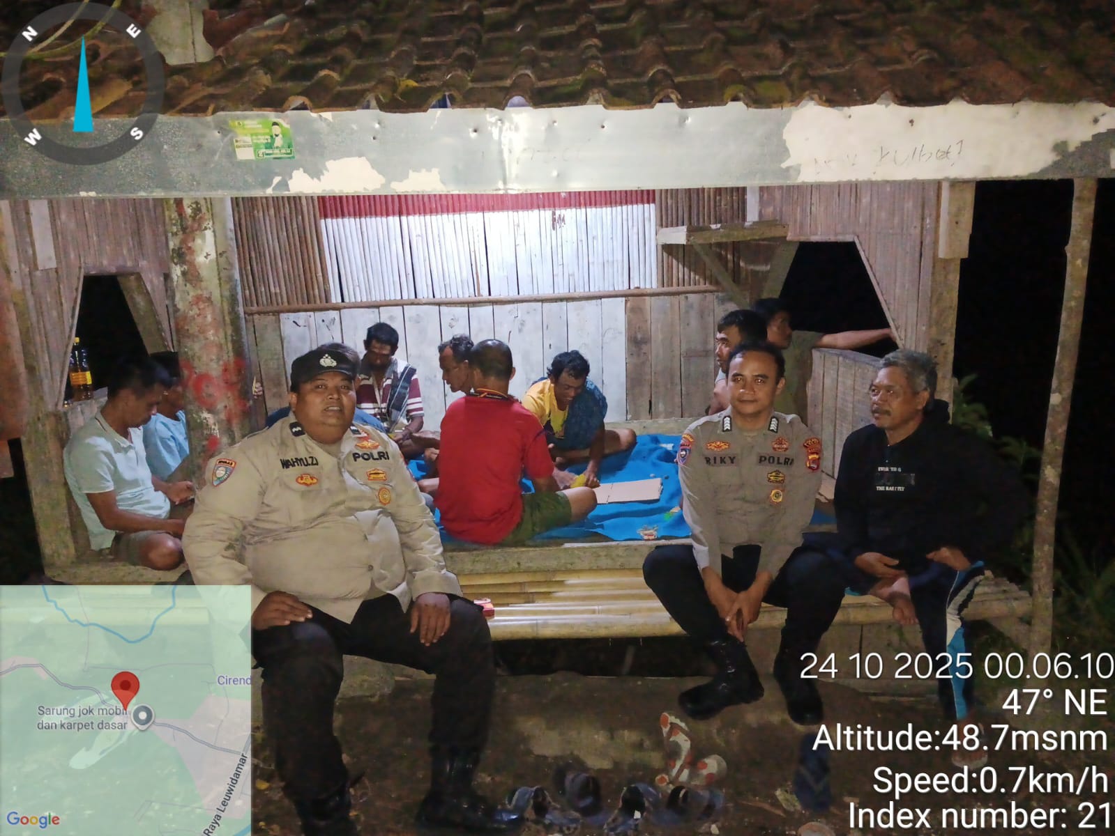 Berikan rasa aman anggota Polsek Rangkasbitung,AIPDA Wahyu Zjatmiko dan BRIPKA Riki Andriana,Sambangi poskamling, di Kampung Cirende Alingan,Desa Kalanganyar, Kecamatan Kalanganyar, Kabupaten Lebak.Kamis malam 23 Oktober 2025,pukul.23.45 Wib.