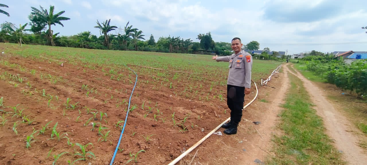 Personel Polsek Serang melaksanakan kegiatan pemantauan perkembangan lahan jagung yang merupakan bagian dari program ketahanan pangan, bertempat di Lingkungan Perumnas, Kelurahan Serang, Kecamatan Serang, Kota Serang, pada Jumat (17/10/2025).