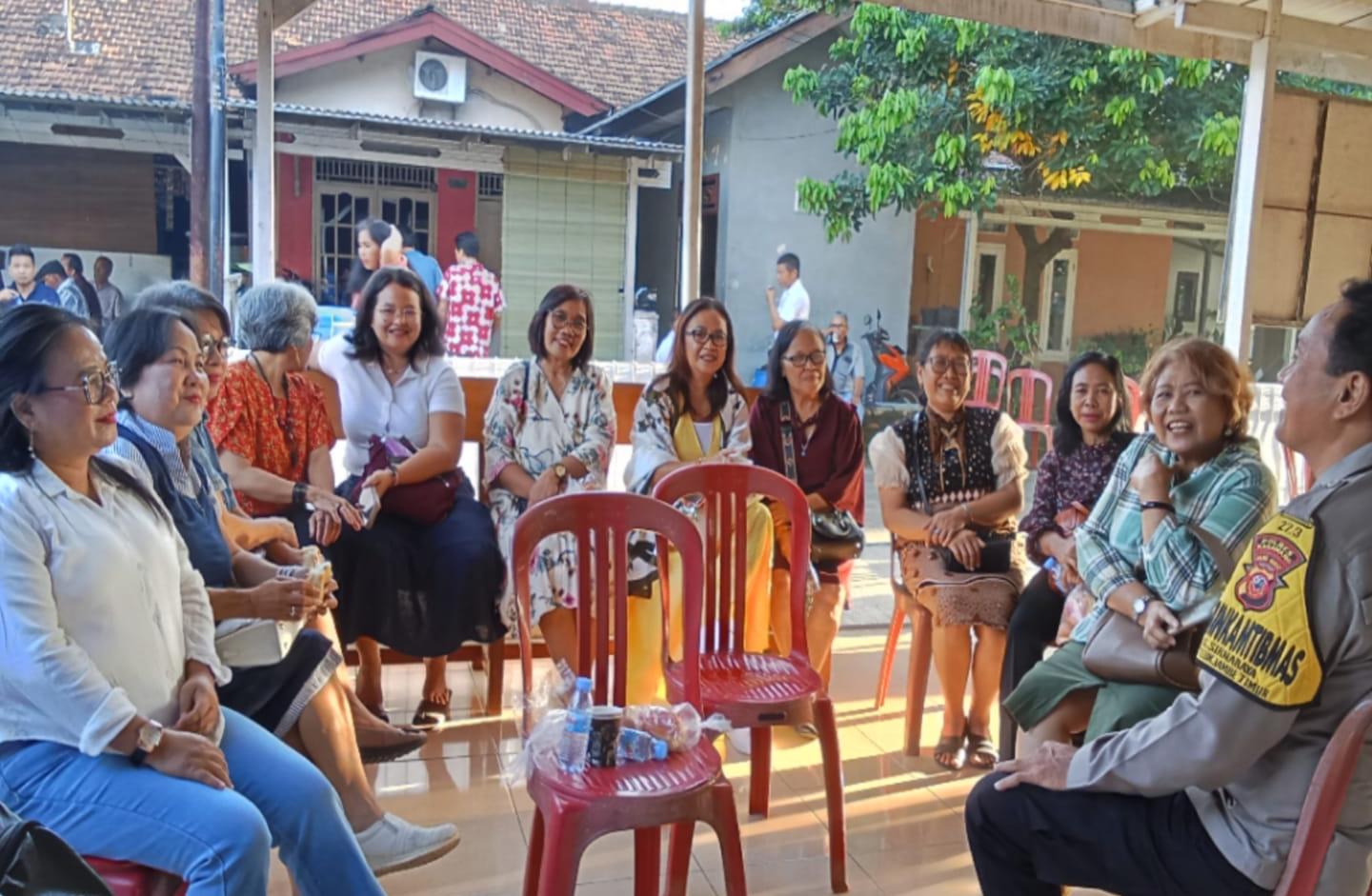 Selaku Kapolsek Telukjambe Timur, Kompol Iis Puspita, mengarahkan Bhsbinkamtibmas Desa Sirnabaya, Aiptu M. Ali agar menyambangi Jemaat Gereja di Kampung Pancasila.