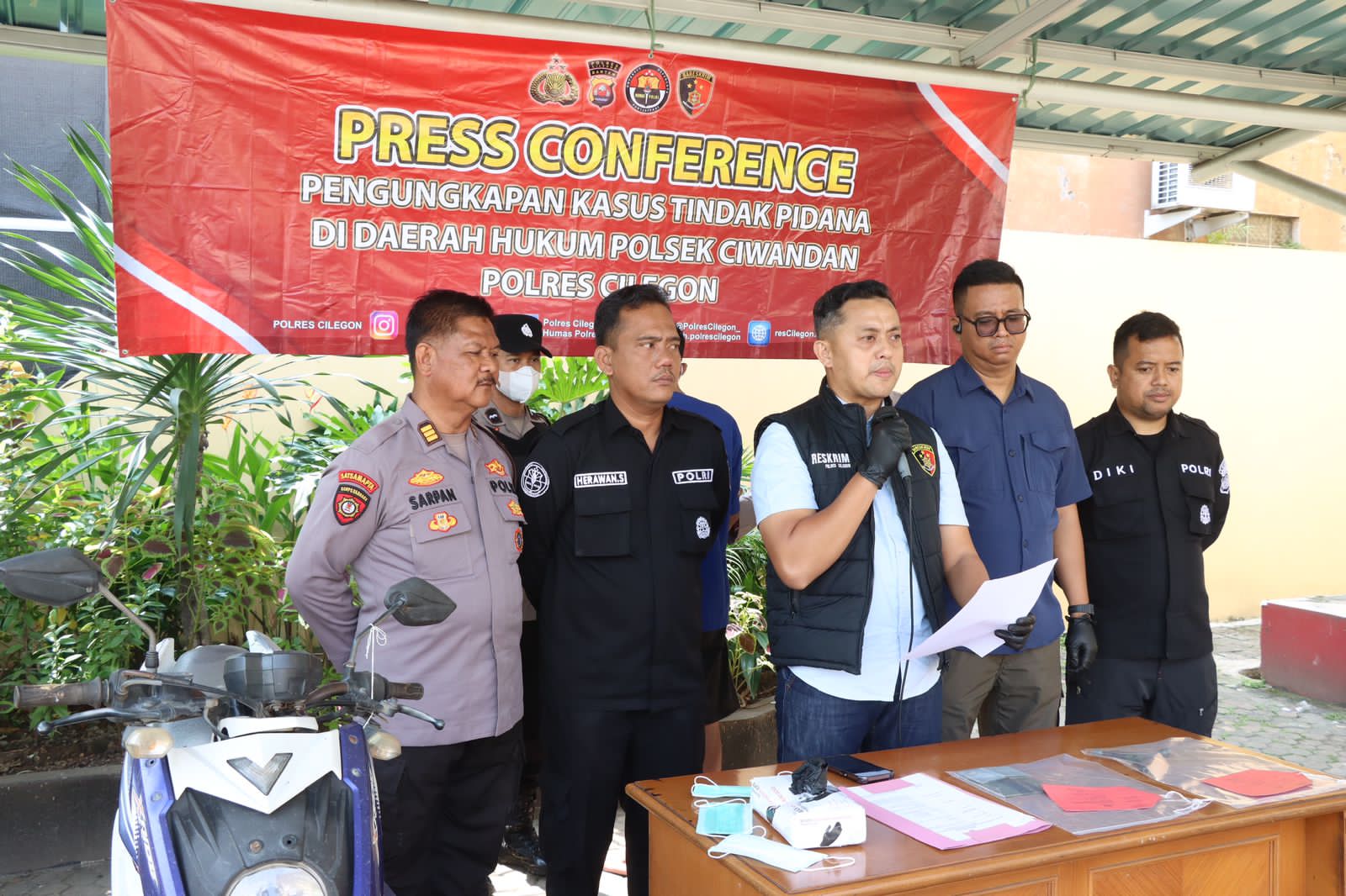 IPDA Muhamad Suharya S.H. selaku Panit 2 unit Reskrim Polsek Ciwandan Polres Cilegon Polda Banten menjelaskan pada saat press confrence pelaku pencurian sepeda motor sudah melakukan aksinya sudah berulang kali dan baru kali ini ditangkap,pelaku A (32) Kp. Nagreg Ds. Siketug Kec. Ciomas Kab. Serang.