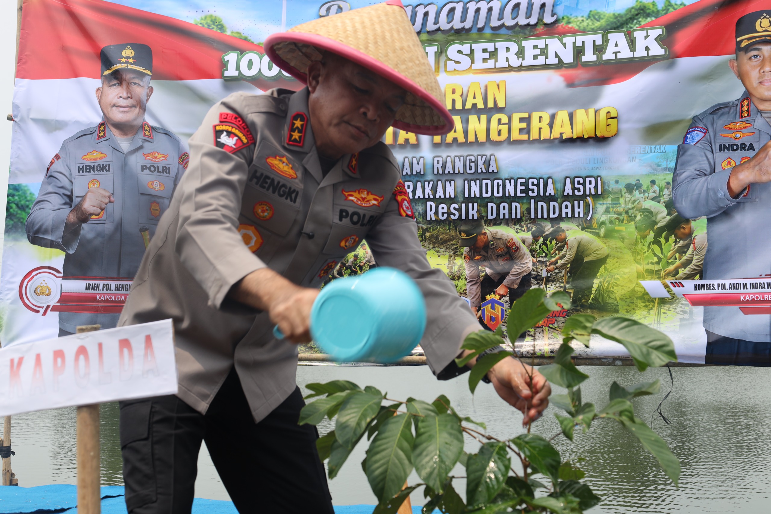 “Kegiatan penanaman pohon dilakukan di wilayah hukum Polsek Pasar Kemis menanam 600 bibit pohon rambutan di bantaran danau Kampung Pondok, Desa Sukaharja, Kecamatan Sindang Jaya, dengan luas 2,4 hektare. Sementara itu, Polsek Panongan, Polsek Cisoka, Polsek Tigaraksa, dan Polsek Cikupa masing-masing menanam 100 bibit di wilayahnya dengan luas lahan 4.000 meter persegi,” ujar Kapolda Banten di Desa Sukaharja, Pasar Kemis, Kabupaten Tangerang pada Selasa (21/04).