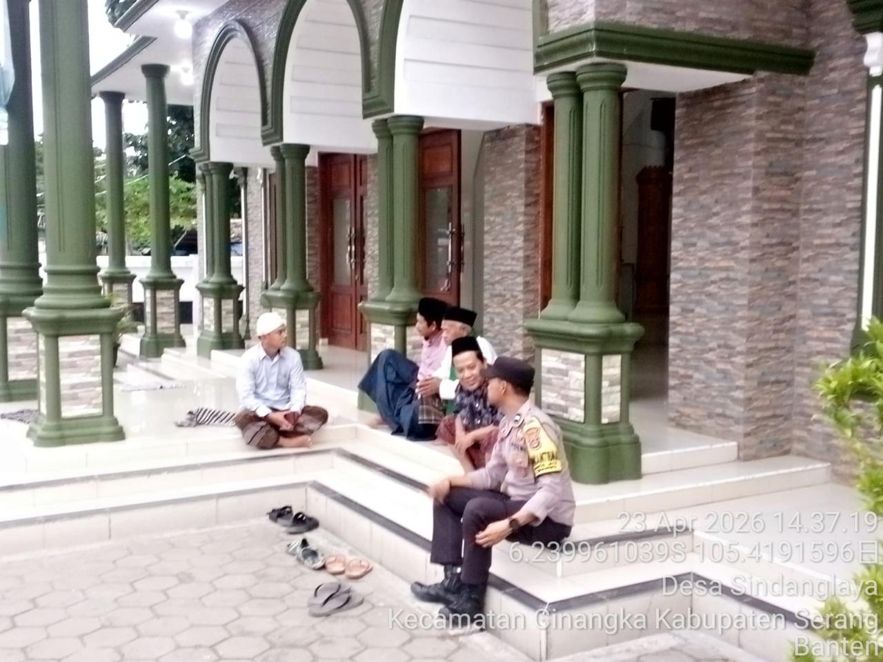 Bhabinkamtibmas Polsek Cinangka Polres Cilegon melakukan giat berupa “Sowan Sesepuh” dengan Tokoh Agama dan Masyarakat Ngobrol Bersama di Desa Sindanglaya Kec. Cinangka Kab. Serang dalam rangka menjaga Harkamtibmas di Desa Binaannya, Sebagai bentuk mendukung Program Quick Wins Presisi Polri. Kamis (23/04/2026).