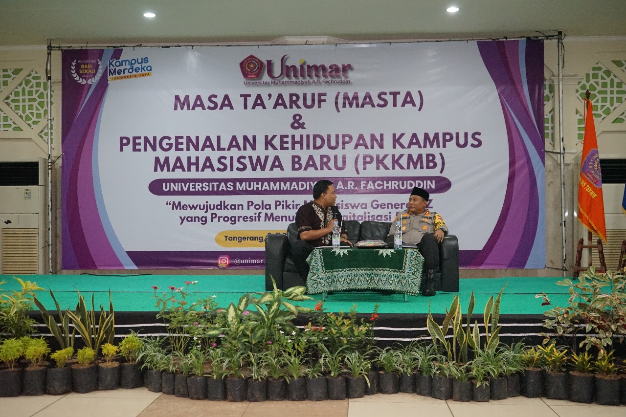 Wakapolresta Tangerang Polda Banten, AKBP Agus Sugiyarso menjadi narasumber dalam kegiatan Masa Ta’aruf (MASTA) Pengenalan Kehidupan Kampus Bagi Mahasiswa Baru (PKKMB) Universitas Muhammadiyah A.R. Fachrudin Tahun Akademik 2024 – 2025, dengan tema ” Mewujudkan Pola Pikir Mahasiswa Generasi Z Yang Progresif Menuju Era Digitalisasi 5.0″, bertempat di Masjid Agung Al Amjad pada hari Jumat (13/09/2024).